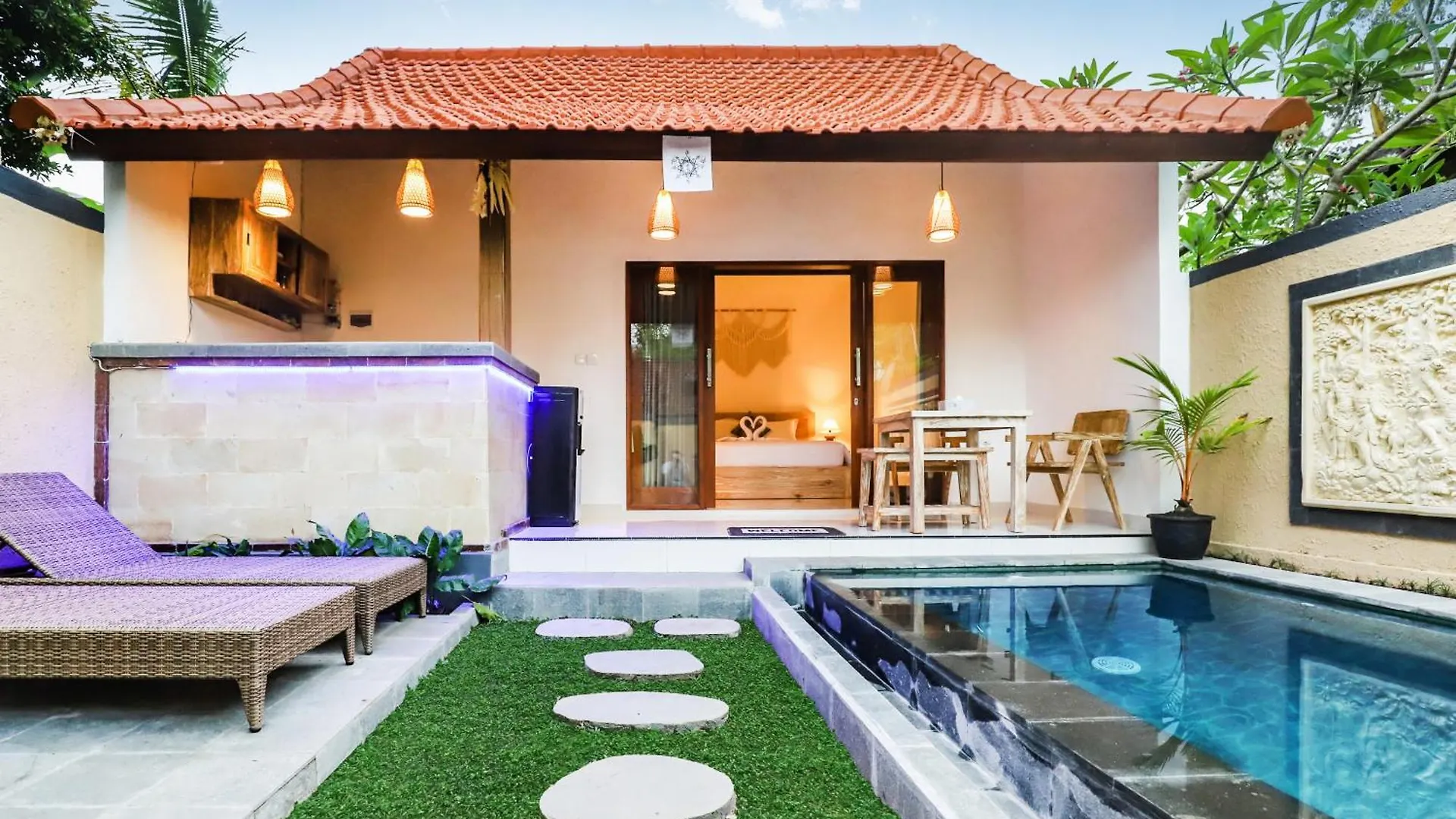 这家别墅配有冷冻机 和炉子,可供住客自己做饭。 离别墅最近的机场是伍拉-赖国际,这座别墅距离它有35公里的路程。